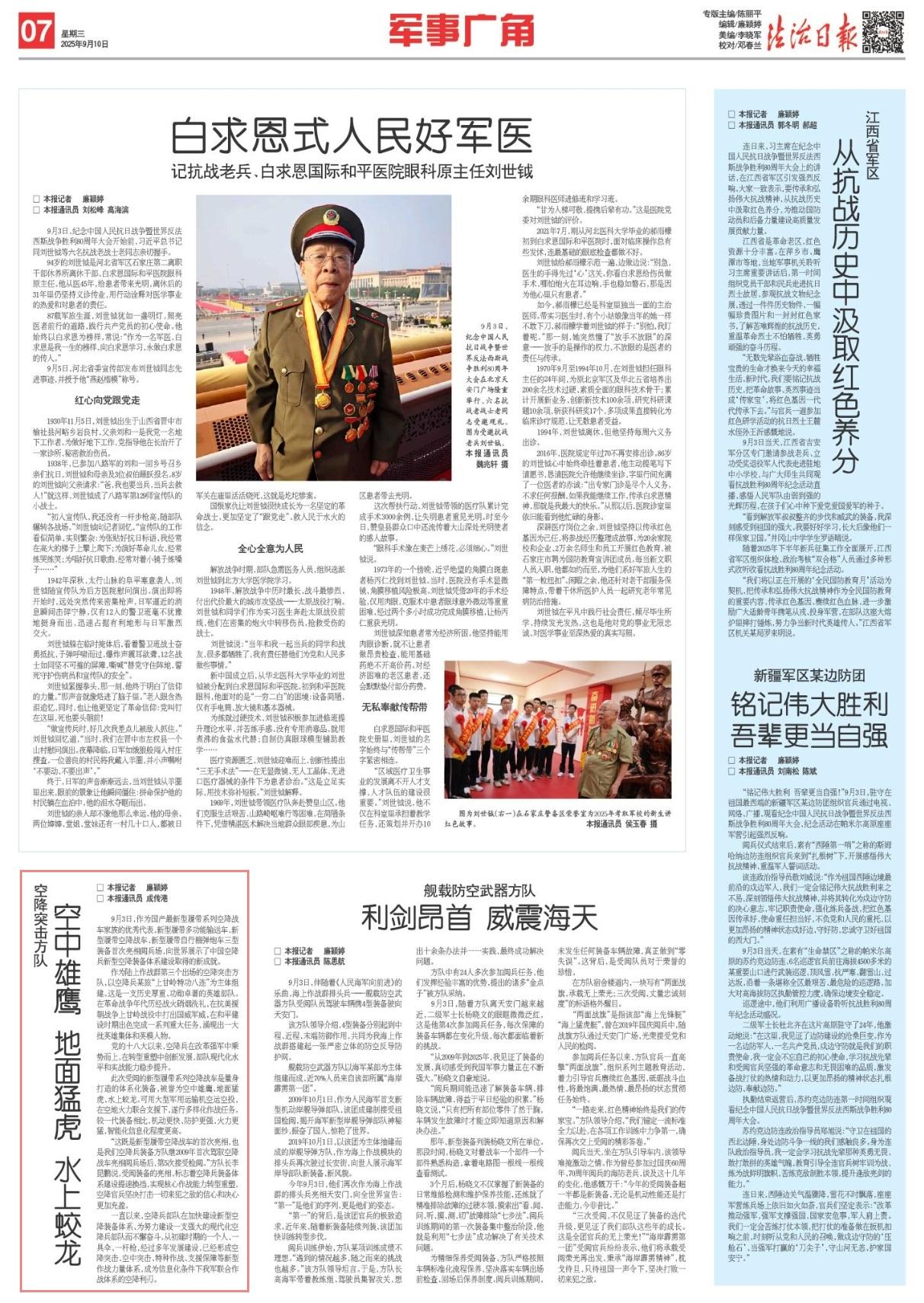 作為陸上作戰(zhàn)群第三個出場的空降突擊方隊,以空降兵某旅“上甘嶺特功八連”為主體組建。這是一支歷史厚重、功勛卓著的英雄部隊。在革命戰(zhàn)爭年代歷經戰(zhàn)火硝煙洗禮,在抗美援朝戰(zhàn)爭上甘嶺戰(zhàn)役中打出國威軍威,在和平建設時期出色完成一系列重大任務,涌現出一大批英雄集體和英模人物。