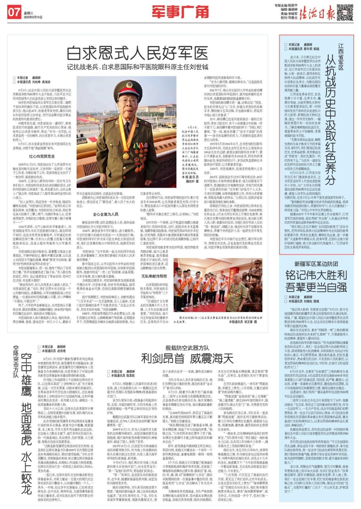 連日來,習(xí)主席在紀(jì)念中國(guó)人民抗日戰(zhàn)爭(zhēng)暨世界反法西斯戰(zhàn)爭(zhēng)勝利80周年大會(huì)上的講話,在江西省軍區(qū)引發(fā)強(qiáng)烈反響。大家一致表示,要傳承和弘揚(yáng)偉大抗戰(zhàn)精神,從抗戰(zhàn)歷史中汲取紅色養(yǎng)分,為推動(dòng)國(guó)防動(dòng)員和后備力量建設(shè)高質(zhì)量發(fā)展貢獻(xiàn)力量。