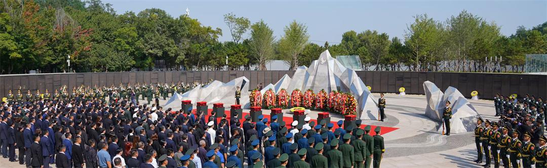 9月13日10時,安葬儀式開始。陵園下沉式紀(jì)念廣場環(huán)形烈士英名墻下,擺滿黃白相間的菊花,參加儀式的人們肅穆站立。軍樂隊奏響婉轉(zhuǎn)低回的《思念曲》,在解放軍儀仗司禮大隊官兵持槍護衛(wèi)下,禮兵們邁著整齊的步伐,護送志愿軍烈士遺骸棺槨緩步進入紀(jì)念廣場,全場奏唱中華人民共和國國歌。