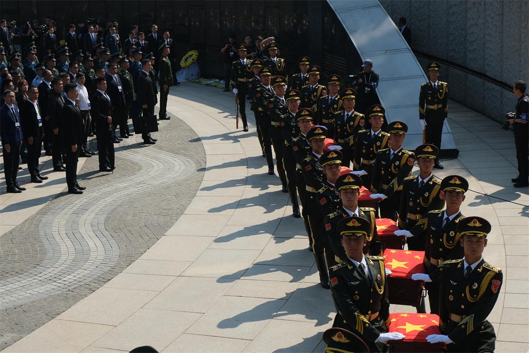 圖為9月13日,禮兵護送志愿軍烈士棺槨進入沈陽抗美援朝烈士陵園安葬地宮。張永進 攝