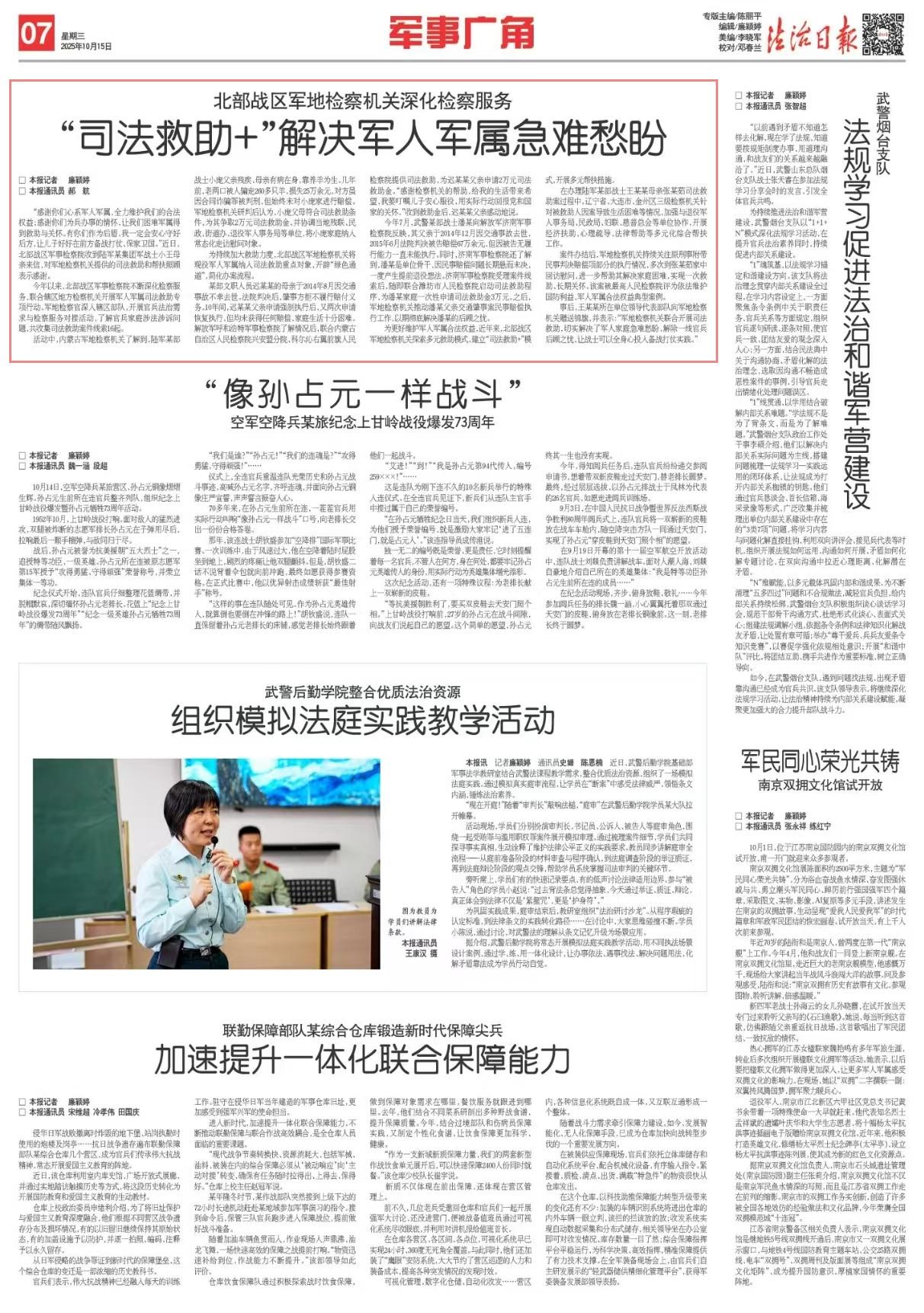為持續(xù)加大救助力度,北部戰(zhàn)區(qū)軍地檢察機(jī)關(guān)將現(xiàn)役軍人軍屬納入司法救助重點(diǎn)對(duì)象,開(kāi)辟“綠色通道”,簡(jiǎn)化辦案流程。