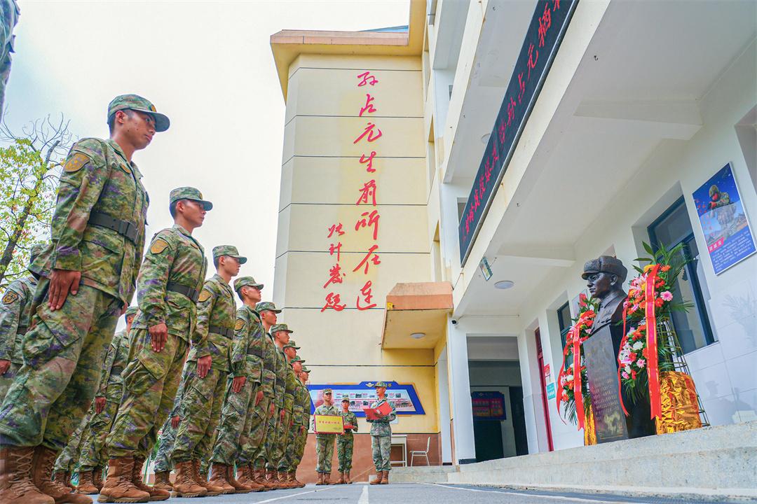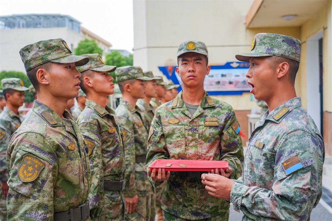 圖為舉行入連儀式,指導(dǎo)員成傳港為新同志們授予榮譽(yù)編號(hào),注入英雄血脈。盛海倫 攝