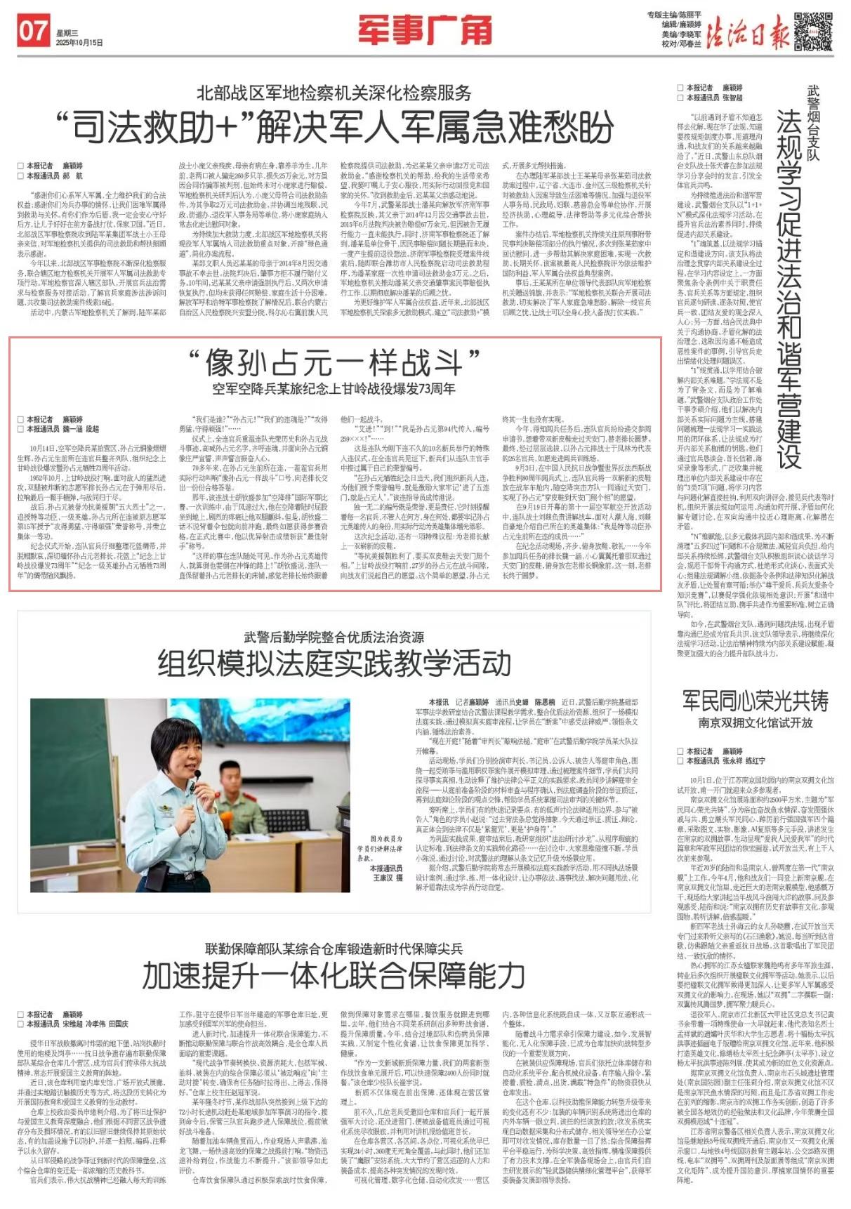 70多年來,在孫占元生前所在連,一茬茬官兵用實(shí)際行動(dòng)叫響“像孫占元一樣戰(zhàn)斗”口號(hào),向老排長交出一份份合格答卷。