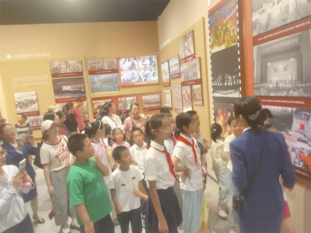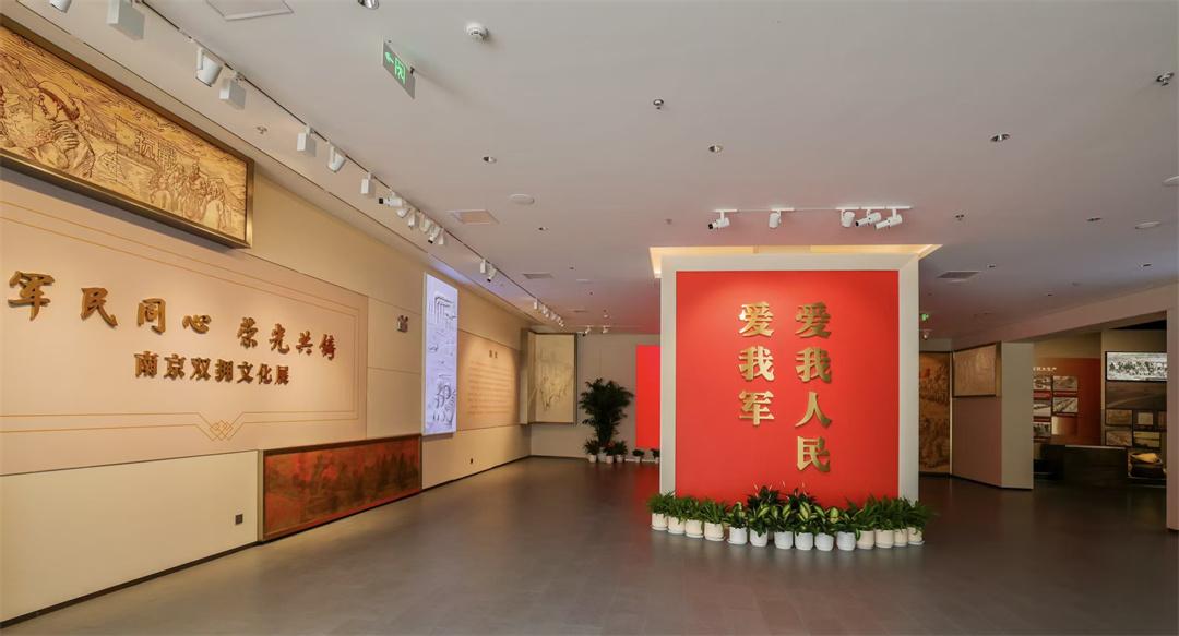 南京雙擁文化館展陳面積約2500平方米,主題為“軍民同心榮光共鑄”,分為浴血奮戰(zhàn)魚水情深、奮發(fā)圖強(qiáng)休戚與共、勇立潮頭軍民同心、踔厲前行強(qiáng)國(guó)強(qiáng)軍四個(gè)篇章,采取圖文、實(shí)物、影像、AI復(fù)原等多元手段,講述發(fā)生在南京的雙擁故事,生動(dòng)呈現(xiàn)“愛我人民愛我軍”的時(shí)代篇章和軍政軍民團(tuán)結(jié)的恢宏畫卷。試開放當(dāng)天,有上千人次前來參觀。