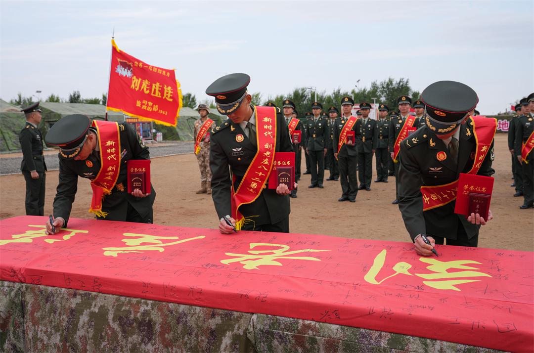 圖為陸軍第82集團(tuán)軍某旅“劉老莊連”舉行“新時(shí)代劉老莊八十二勇士”頒授儀式。這是連隊(duì)干部為新當(dāng)選的勇士頒發(fā)證書。張永進(jìn) 攝