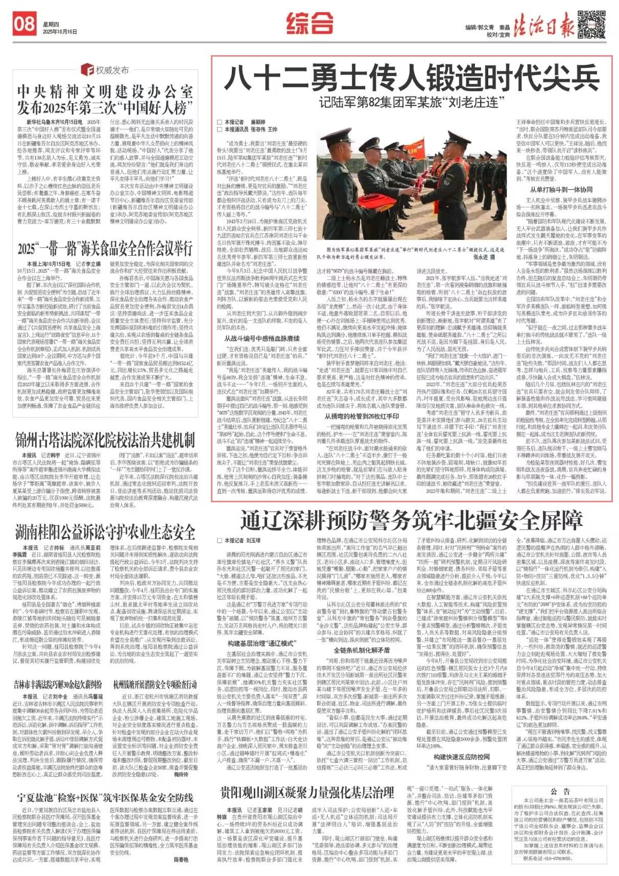 任務(wù)最吃緊的數(shù)十個(gè)小時(shí)里,他們?nèi)找共恍莸匮b沙袋、固堤壩、堵缺口,就像82年前的先輩們堅(jiān)守陣地那樣,用身體構(gòu)成防洪堤,最終圓滿完成任務(wù)。如今,那張摁有26枚紅手印的請(qǐng)戰(zhàn)書,被收藏進(jìn)“劉老莊連”榮譽(yù)室。