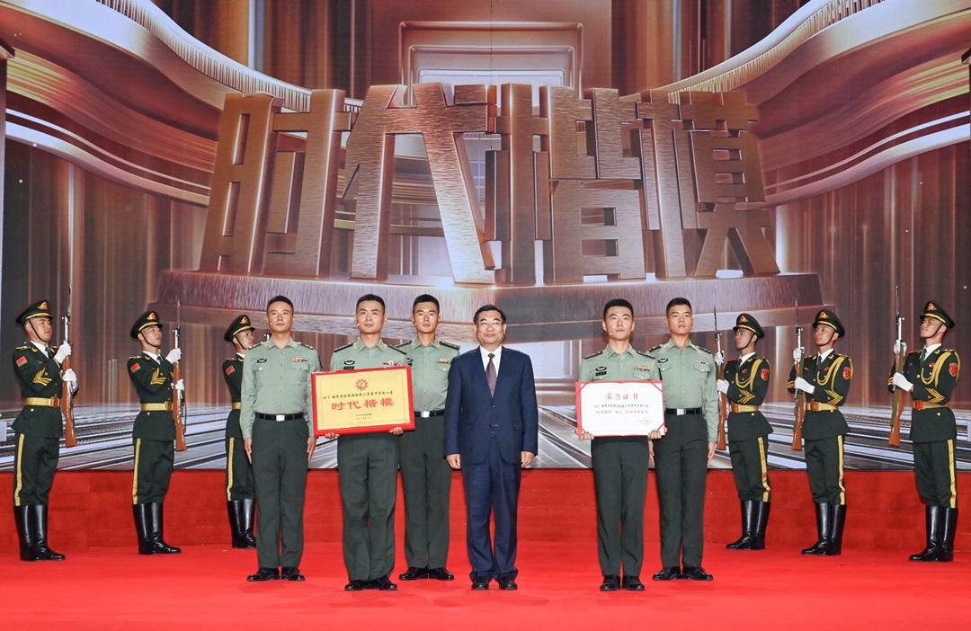圖為在“時(shí)代楷?!卑l(fā)布儀式上,陸軍第八十二集團(tuán)軍某旅“劉老莊連”官兵代表領(lǐng)取“時(shí)代楷?!豹?jiǎng)牌和證書(shū)。張永進(jìn) 攝