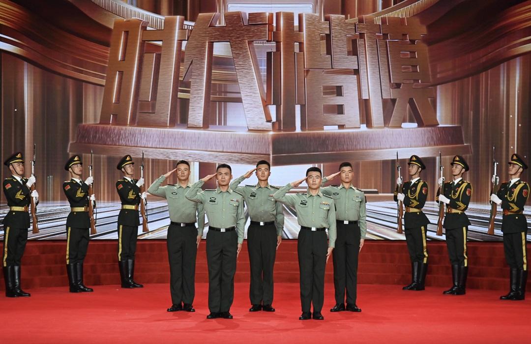 圖為在“時(shí)代楷?!卑l(fā)布儀式上,陸軍第八十二集團(tuán)軍某旅“劉老莊連”官兵代表敬禮。張永進(jìn) 攝