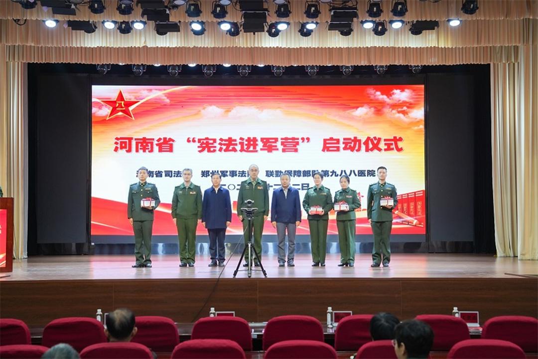 12月2日,鄭州軍事法院聯(lián)合河南省司法廳在聯(lián)勤保障部隊第九八八醫(yī)院,舉行了一場別開生面的“憲法進軍營”啟動儀式。儀式上,河南省司法廳領(lǐng)導表示,“八五”普法以來,河南省將“送法進軍營”作為做好雙擁工作、推動軍民融合發(fā)展的重要抓手,連續(xù)多年與鄭州軍事法院開展法治宣傳教育進軍營活動,厚植軍隊法治文化,助推法治軍營建設。