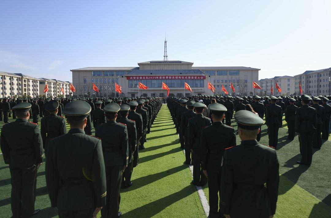 近日,武警安徽總隊(duì)舉行2025年度秋季新兵授銜儀式,千余名新兵經(jīng)過(guò)三個(gè)月訓(xùn)練,被授予武警列兵警銜,正式成為一名光榮的武警戰(zhàn)士。