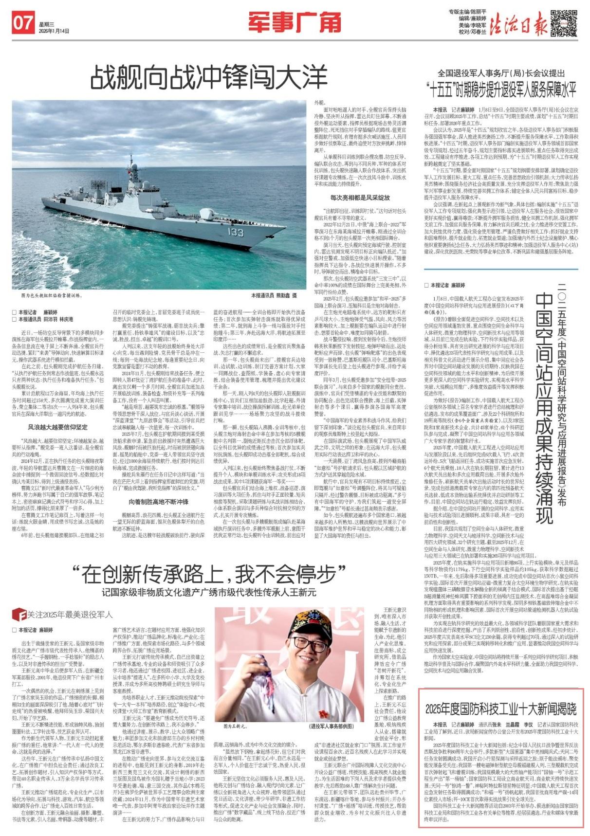 2025年度國防科技工業(yè)十大新聞包括:紀念中國人民抗日戰(zhàn)爭暨世界反法西斯戰(zhàn)爭勝利80周年大會舉行,多款新型“大國重器”集中亮相閱兵式;天問二號任務發(fā)射圓滿成功,我國開啟小行星探測與采樣返回之旅;原子能法頒布,聚變能發(fā)展備受關注;我國第一艘電磁彈射型航空母艦福建艦入列,三型艦載機完成首次彈射起飛和著艦訓練;我國規(guī)模最大的天然鈾產(chǎn)能項目“國鈾一號”示范工程生產(chǎn)出“第一桶鈾”;國家國防科工局設立商業(yè)航天司,商業(yè)航天持續(xù)快速發(fā)展;天問一號“驚鴻一瞥”,神秘阿特拉斯彗星特征明顯;中國載人航天工程首次應急發(fā)射任務取得圓滿成功;“和福一號”揚帆起航,我國首批商用堆產(chǎn)碳-14同位素投入市場;殲-10CE首次取得實戰(zhàn)戰(zhàn)果引發(fā)全球關注。