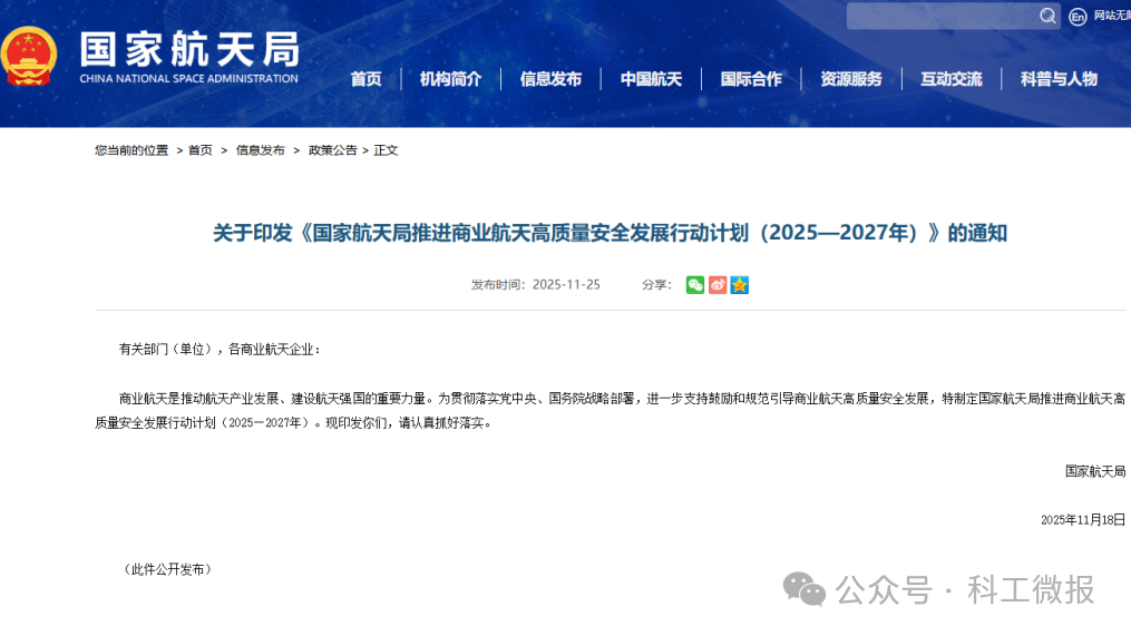 2025年,國家國防科工局設立商業(yè)航天司,印發(fā)《推進商業(yè)航天高質量安全發(fā)展行動計劃(2025-2027年)》,提出將商業(yè)航天納入國家航天發(fā)展總體布局,加快形成航天新質生產(chǎn)力,實現(xiàn)航天發(fā)展效能整體提升,有力支撐航天強國建設。全年商業(yè)航天持續(xù)快速發(fā)展,產(chǎn)業(yè)生態(tài)協(xié)同推進,科研生產(chǎn)安全有序,產(chǎn)業(yè)規(guī)模不斷壯大,創(chuàng)新創(chuàng)造活力持續(xù)增強,行業(yè)治理能力不斷提升。在液氧甲烷重復使用火箭研制中,首次吸納商業(yè)航天企業(yè)作為總承研單位參與;海南商業(yè)航天發(fā)射場正式具備雙工位發(fā)射能力;多型商業(yè)火箭完成發(fā)射任務。