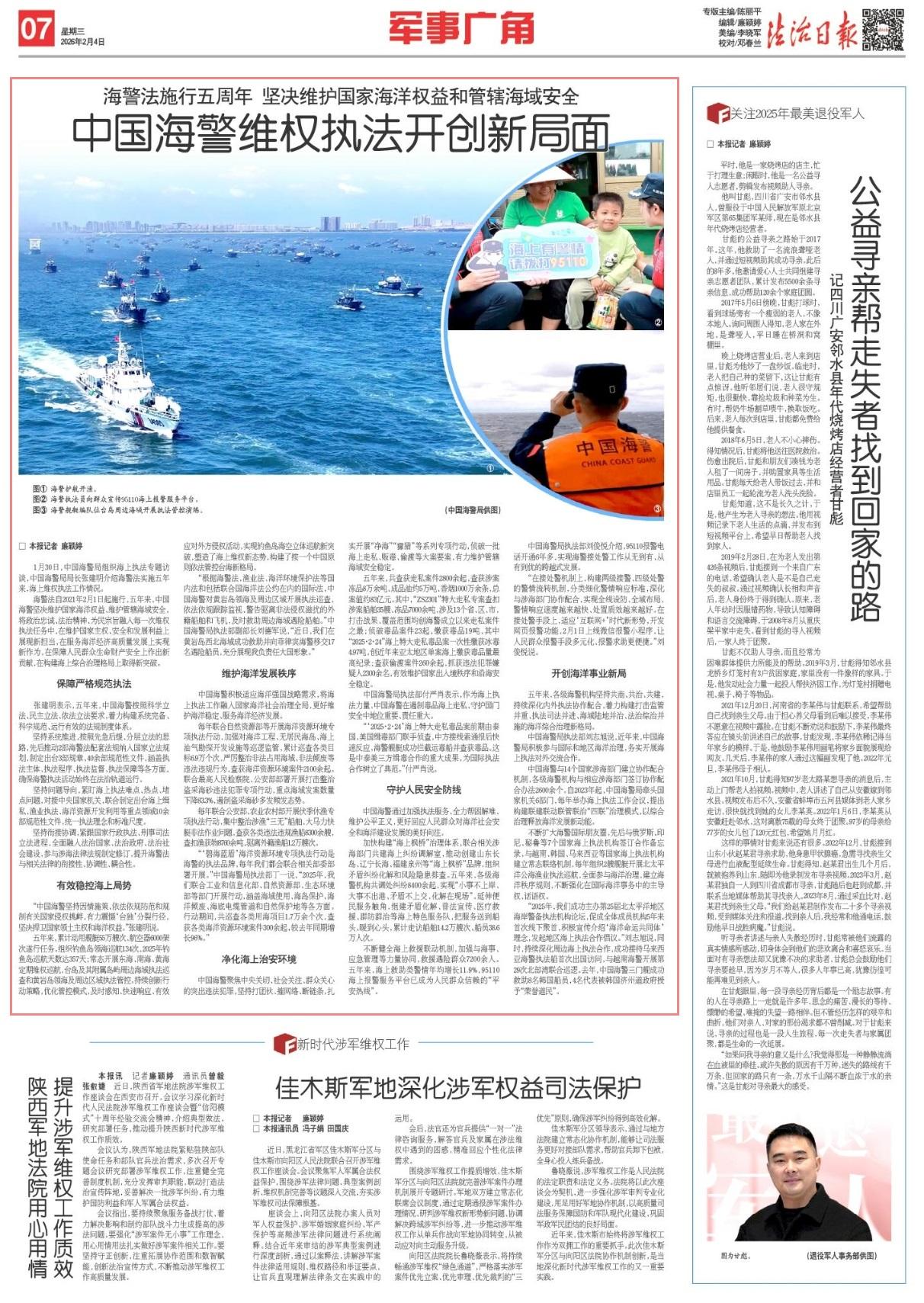 海警法自2021年2月1日起施行,五年來,中國海警堅(jiān)決維護(hù)國家海洋權(quán)益、維護(hù)管轄海域安全,將政治忠誠、法治精神、為民宗旨融入每一次維權(quán)執(zhí)法任務(wù)中,在維護(hù)國家主權(quán)、安全和發(fā)展利益上展現(xiàn)新?lián)?dāng),在服務(wù)海洋經(jīng)濟(jì)高質(zhì)量發(fā)展上實(shí)現(xiàn)新作為,在保障人民群眾生命財(cái)產(chǎn)安全上作出新貢獻(xiàn),在構(gòu)建海上綜合治理格局上取得新突破。
