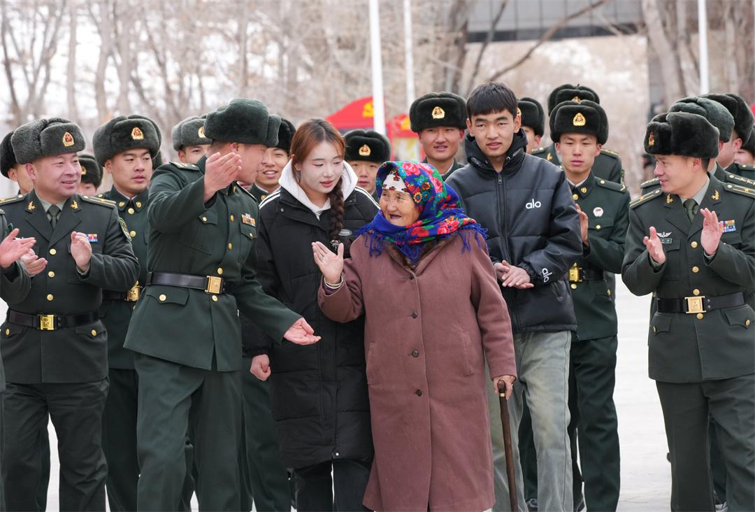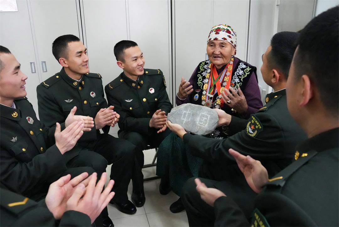 得知連隊又來了六名新兵,布茹瑪汗執(zhí)意要去看看。坐在床沿,她握緊年輕戰(zhàn)士的手,講述起往事。舊時代的陰霾、新中國的光芒、共產(chǎn)黨的恩情、解放軍的親……說到動情處,她不時抬手擦拭眼角。