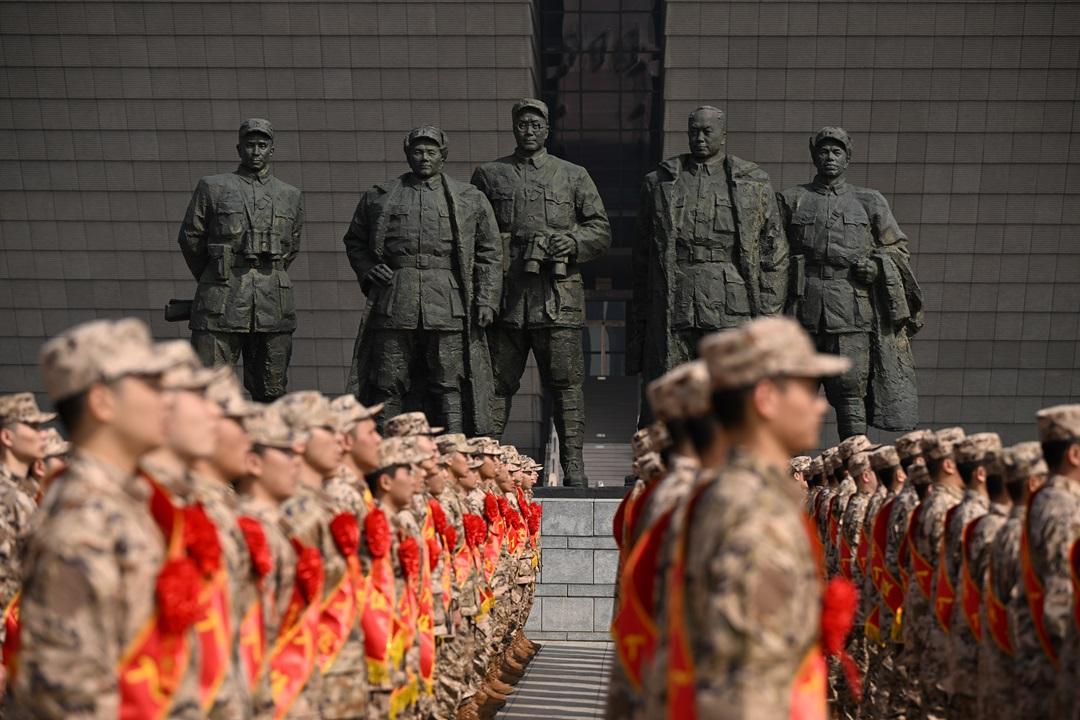 3月13日,安徽省合肥市舉行2026年上半年新兵入伍歡送儀式。圖為在渡江戰(zhàn)役紀(jì)念館解放廣場(chǎng),身著迷彩服、胸前佩戴大紅花的新戰(zhàn)士整齊列隊(duì),帶著父老鄉(xiāng)親的囑托,奔赴軍營(yíng)建功立業(yè)。