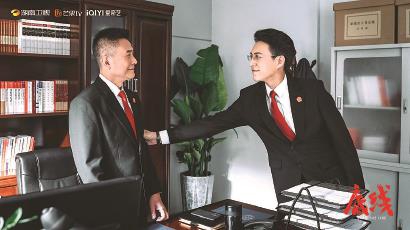 首部全景展現(xiàn)我國司法改革最新成果的法治題材電視劇《底線》正在熱播,鋪展當代敘事視角下的法治中國圖景。圖為該劇劇照,右為主演靳東,左為特別出演張志堅。
