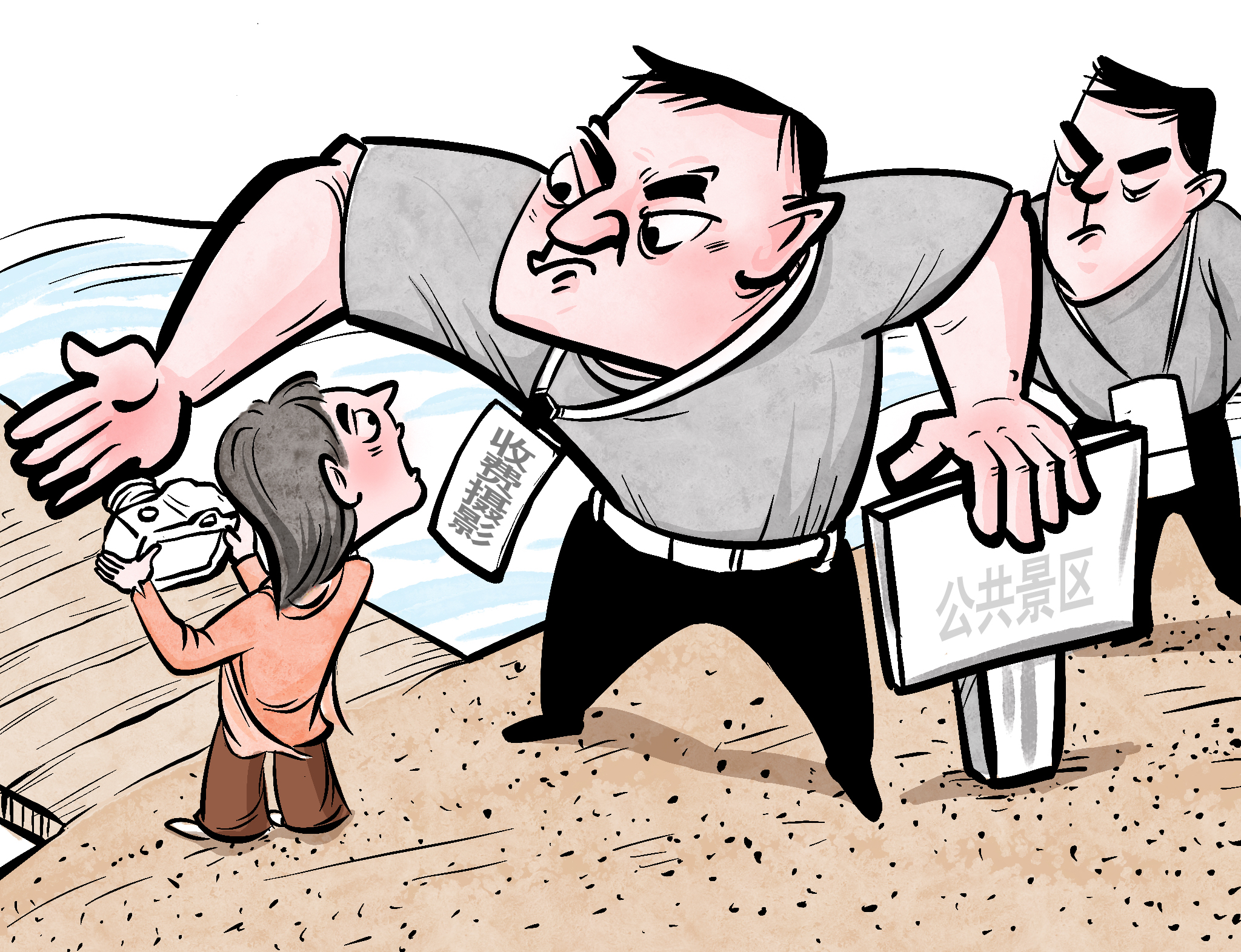 點(diǎn)評(píng):公共景區(qū)不是個(gè)別人的私家花園,不容私自“立規(guī)矩”,如此公然侵害游客自由與權(quán)益的行為,必須受到法律懲處。