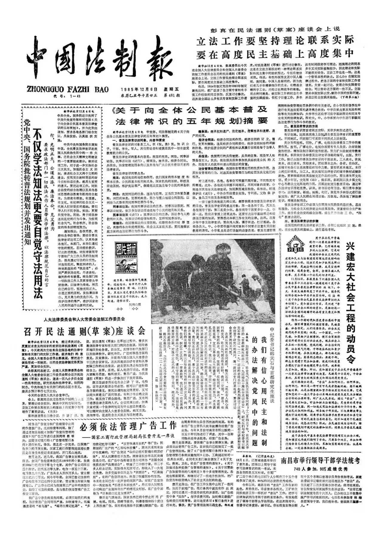 1985年11月5日,中共中央、國(guó)務(wù)院發(fā)出通知,轉(zhuǎn)發(fā)中央宣傳部、司法部《關(guān)于向全體公民基本普及法律常識(shí)的五年規(guī)劃》。通知明確指出,全民普及法律常識(shí)是我國(guó)人民政治生活中的一件大事,是社會(huì)主義精神文明建設(shè)的一個(gè)重要組成部分。同年11月22日,《全國(guó)人民代表大會(huì)常務(wù)委員會(huì)關(guān)于在公民中基本普及法律常識(shí)的決議》由六屆全國(guó)人大常委會(huì)第十三次會(huì)議通過。自此,國(guó)家以五年為周期,有計(jì)劃、有步驟地在全體公民中開展法治宣傳教育,全民普法正式走進(jìn)千家萬戶的日常生活。
