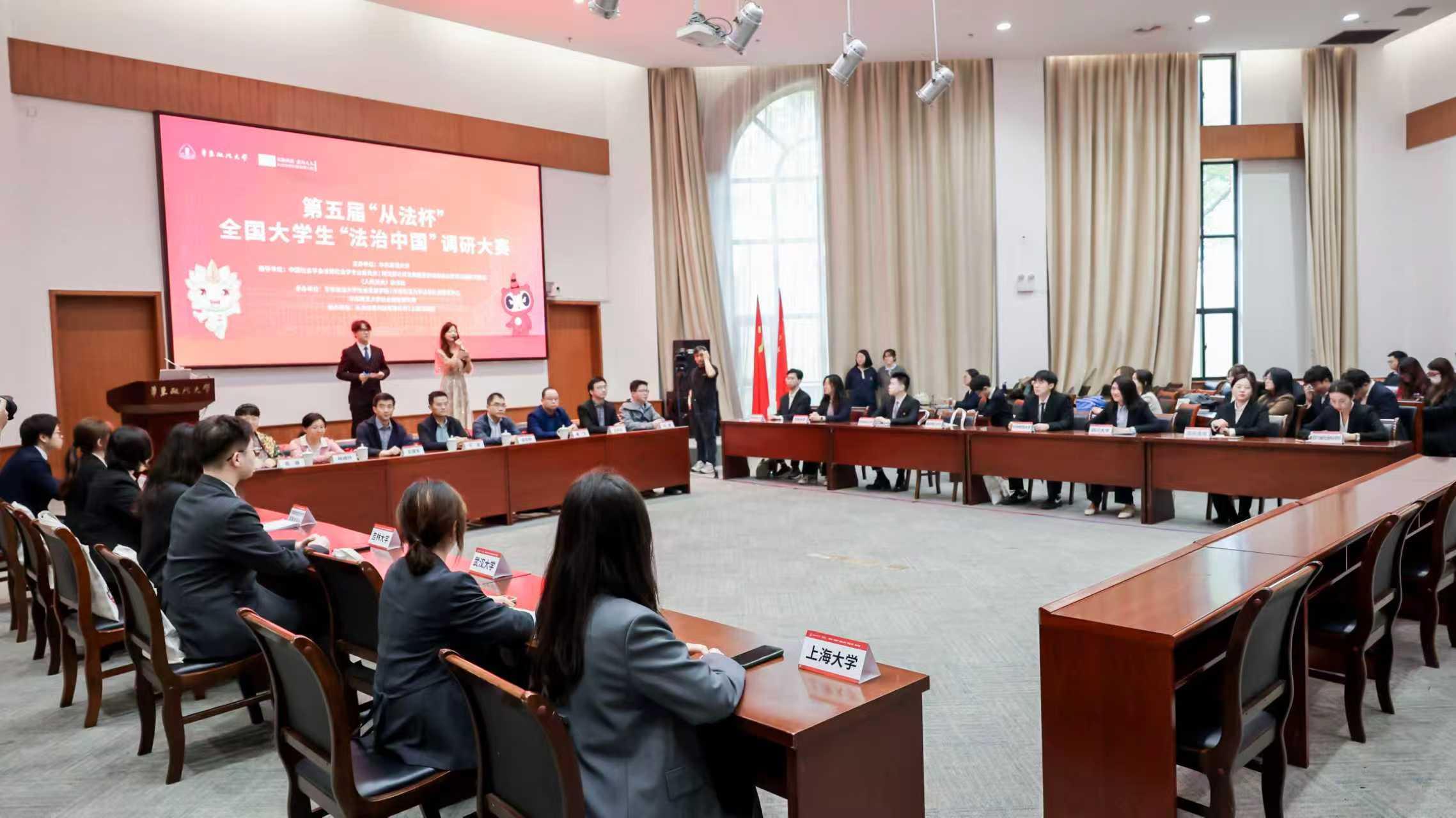 11月1日,由華東政法大學(xué)主辦的第五屆“從法杯”全國大學(xué)生“法治中國”調(diào)研大賽總決賽在上海落下帷幕。來自全國各地的16支參賽隊伍匯聚華政松江校區(qū),圍繞各自的研究問題,通過演示文稿、圖片和視頻以及回答評委提問等多種形式,進行成果交流、角逐比拼。