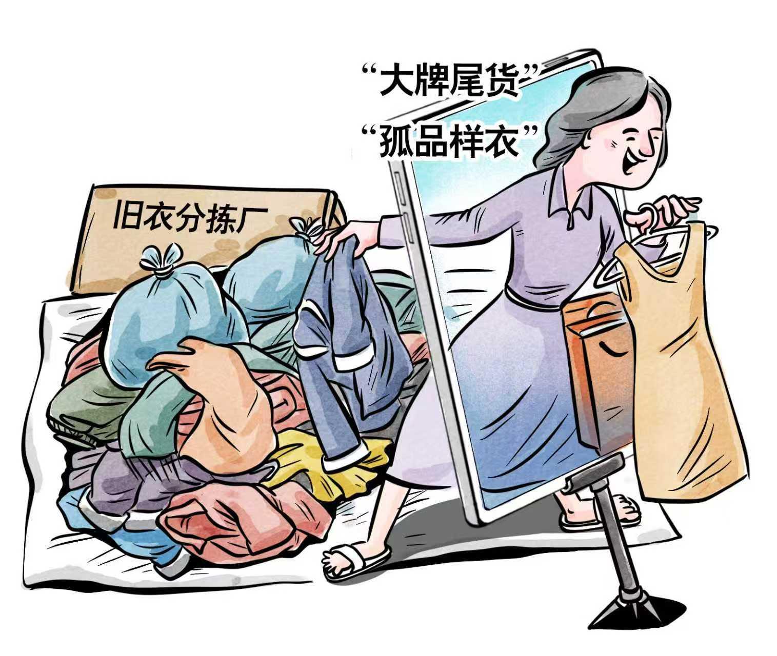 據(jù)媒體近日報道,一些平臺的電商直播間里所謂的“大牌尾貨”“孤品樣衣”,實際上來自舊衣回收。這些二手衣物來源繁雜,既有舊衣分揀廠的貨源,也有來自垃圾站的貨品,但直播間商家對此絕口不提,只以“微臟”“微瑕”等話術(shù)進行銷售。