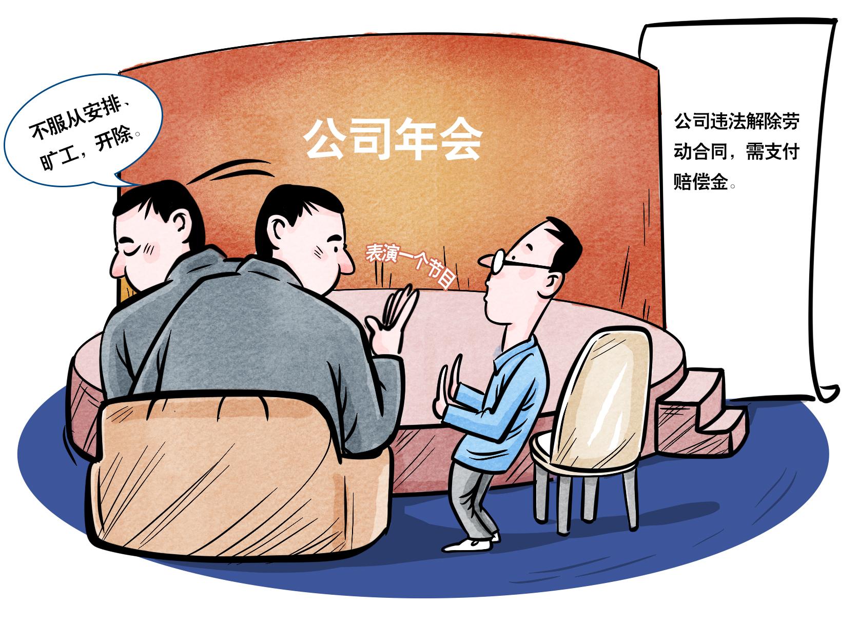 近日,深圳市總工會公布了一起勞動爭議案件。某公司領導要求一名員工在公司年會表演節(jié)目,被該員工拒絕。隨后該領導以“不服從安排、曠工”為由將該員工開除。該員工便申請勞動仲裁維權。經(jīng)仲裁、一審及二審調(diào)解,法院認定該公司行為屬于違法解除勞動合同,需一次性向被開除員工支付賠償金。