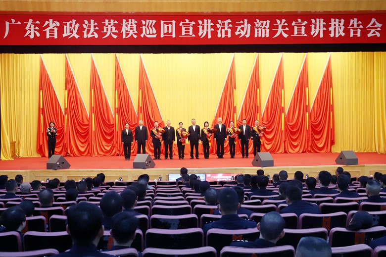 韶關(guān)市委常委、政法委書記李澤航在致辭中表示,各位政法英模圍繞掃黑除惡專項斗爭中的鐵軍本色、堅守高墻做好罪犯教育轉(zhuǎn)化工作、在涉外審判中胸懷“國之大者”、以檢察匠心踐行為民初心、在禁毒戰(zhàn)線上浴血奮戰(zhàn)等主題,分享了先進(jìn)集體故事、個人心路歷程,其事跡感人、形象可親、品格可敬,引發(fā)與會人員強烈共鳴。全韶關(guān)市政法機關(guān)要學(xué)習(xí)英模,汲取奮進(jìn)力量,打造一支讓黨放心、人民群眾滿意的高素質(zhì)政法隊伍,推進(jìn)更高水平的平安韶關(guān)、法治韶關(guān)建設(shè)。