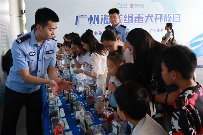 6月22日,廣州海關(guān)聯(lián)合廣州市少年宮舉辦“緝毒犬開放日”活動,通過寓教于樂的禁毒宣傳活動,讓廣大市民朋友在趣味游戲中了解海關(guān)打擊毒品走私工作成效、禁毒常識,并與海關(guān)緝毒犬進行現(xiàn)場親密互動,活動吸引了400余名市民參加。
