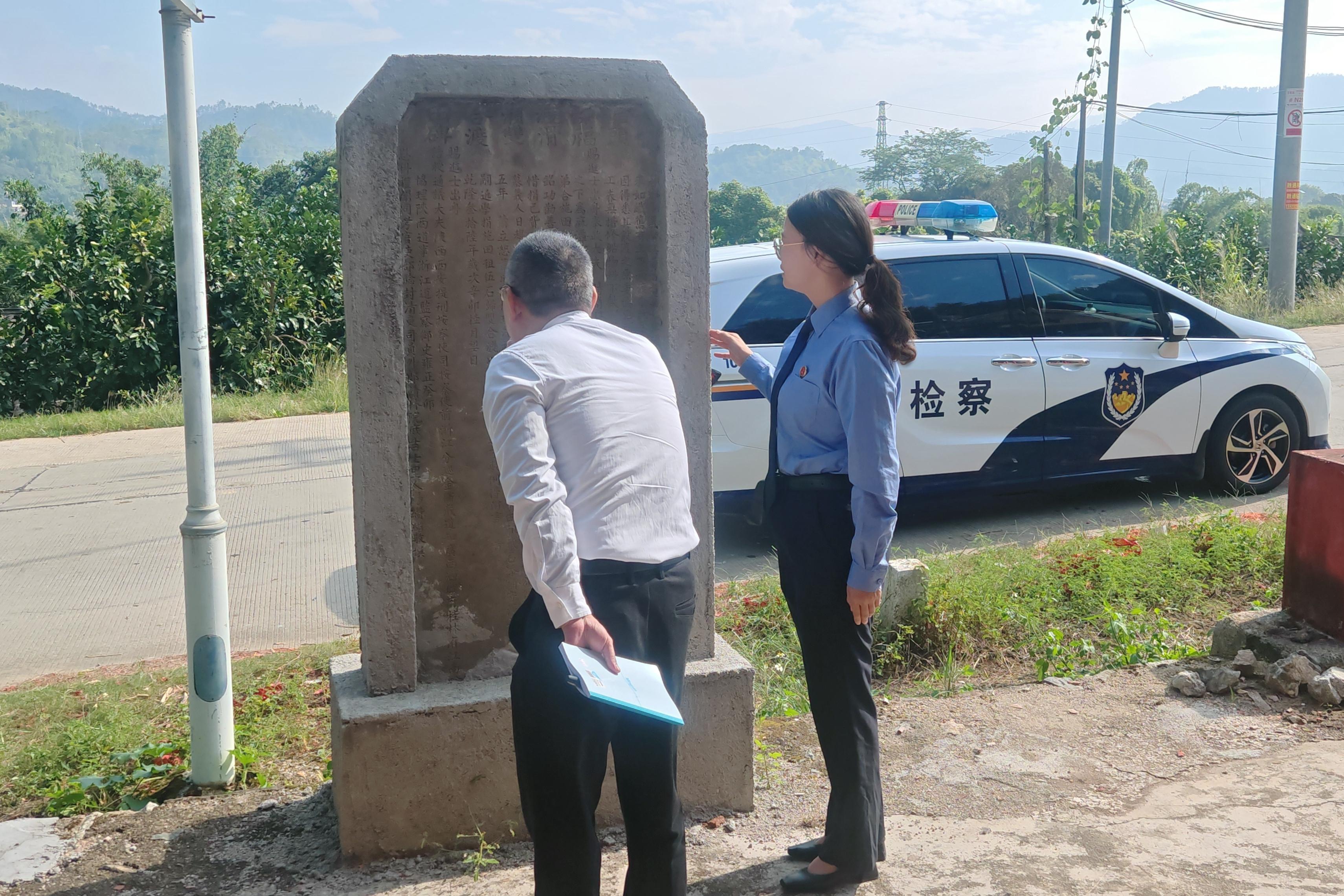 4月10日,大埔縣人民檢察院向縣文廣旅體局及屬地鎮(zhèn)政府制發(fā)檢察建議,明確履職要求與整改時(shí)限,推動(dòng)形成監(jiān)管合力。兩個(gè)月后,收到履職回函的檢察官開展“回頭看”,欣喜看到保護(hù)工作落地見效:“劉曹禁碑”“乾隆壬子稟生石楣桿”“清歲進(jìn)士”3塊石碑經(jīng)專業(yè)清理、修復(fù)、登記后,正式入藏大埔縣博物館;刻有“翰林院庶吉士里人楊纘緒敬撰”字樣、與百侯“一腹三翰林”典故淵源深厚的“兩渡田跡”石碑,在村鎮(zhèn)組織協(xié)調(diào)下,由村民自發(fā)籌款完成原地加固,如今已成為古鎮(zhèn)打卡新地標(biāo),實(shí)現(xiàn)保護(hù)與傳承的有機(jī)統(tǒng)一。