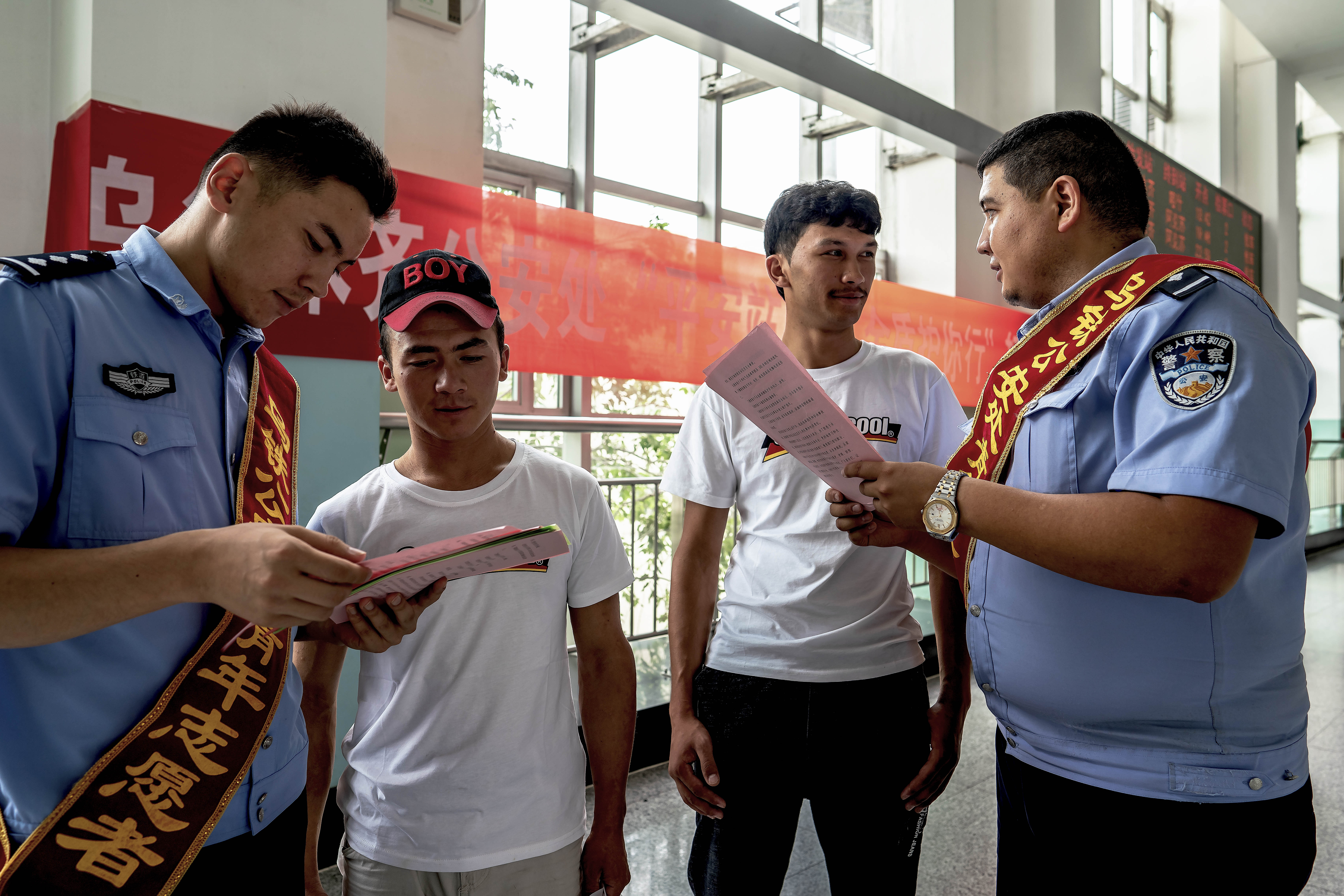 圖為:2019年8月15日,烏魯木齊鐵路公安處“平安站車路、金盾護你行”輕騎兵文藝小分隊在烏魯木齊站、烏魯木齊南站候車室向旅客進行乘車安全宣傳。