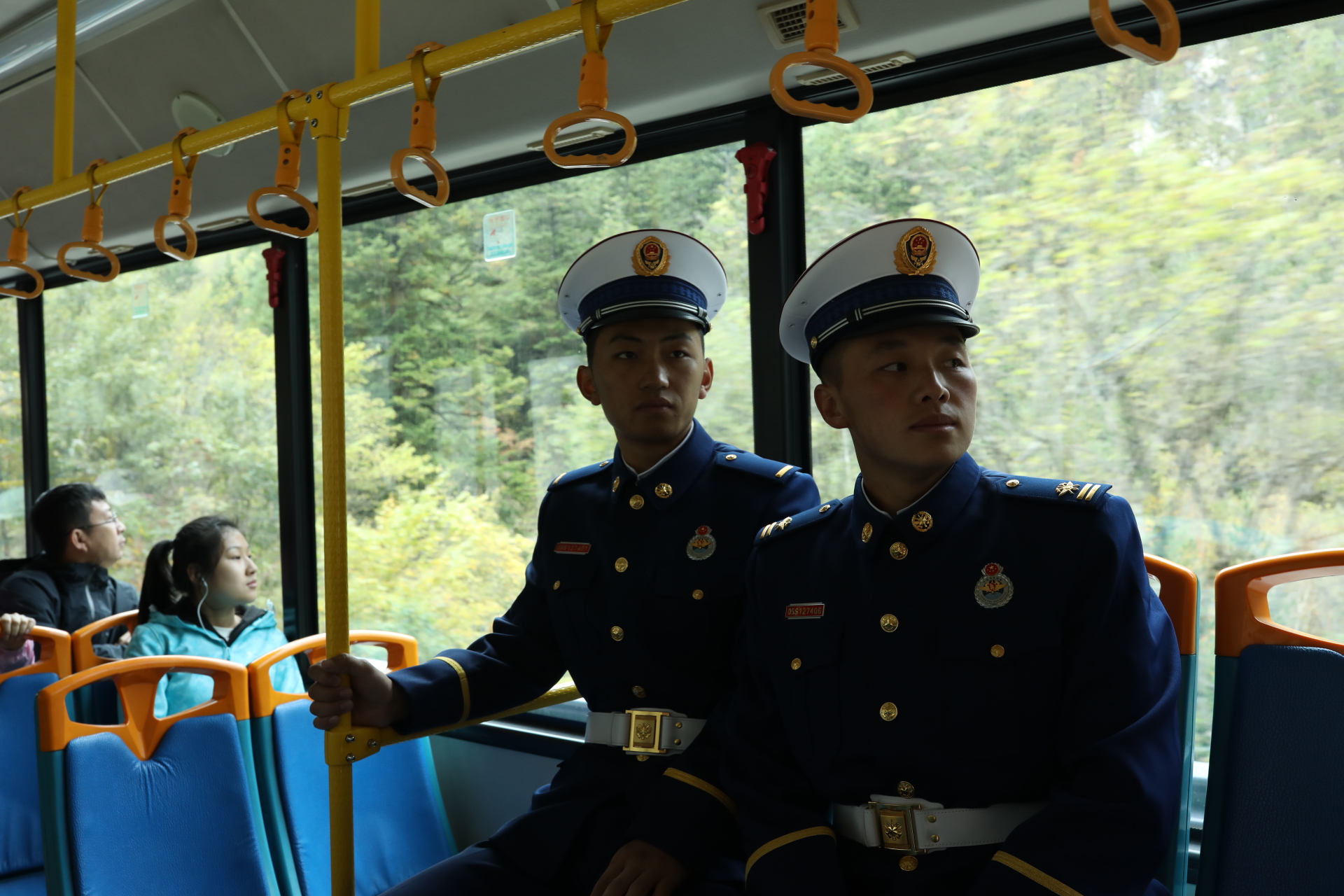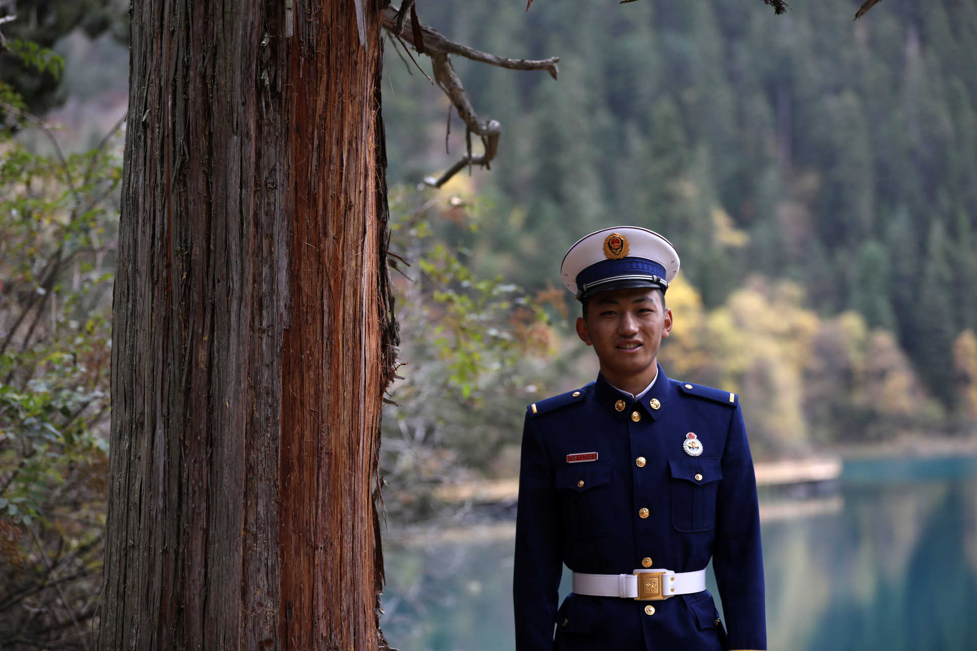 廖海州和中隊(duì)長倪磊并肩巡邏在五花海景點(diǎn)的棧道上,“前年地震,我們從這里抬出來了好幾個(gè)受傷游客.....”這對同年入伍的老隊(duì)員 最能聊到一起。