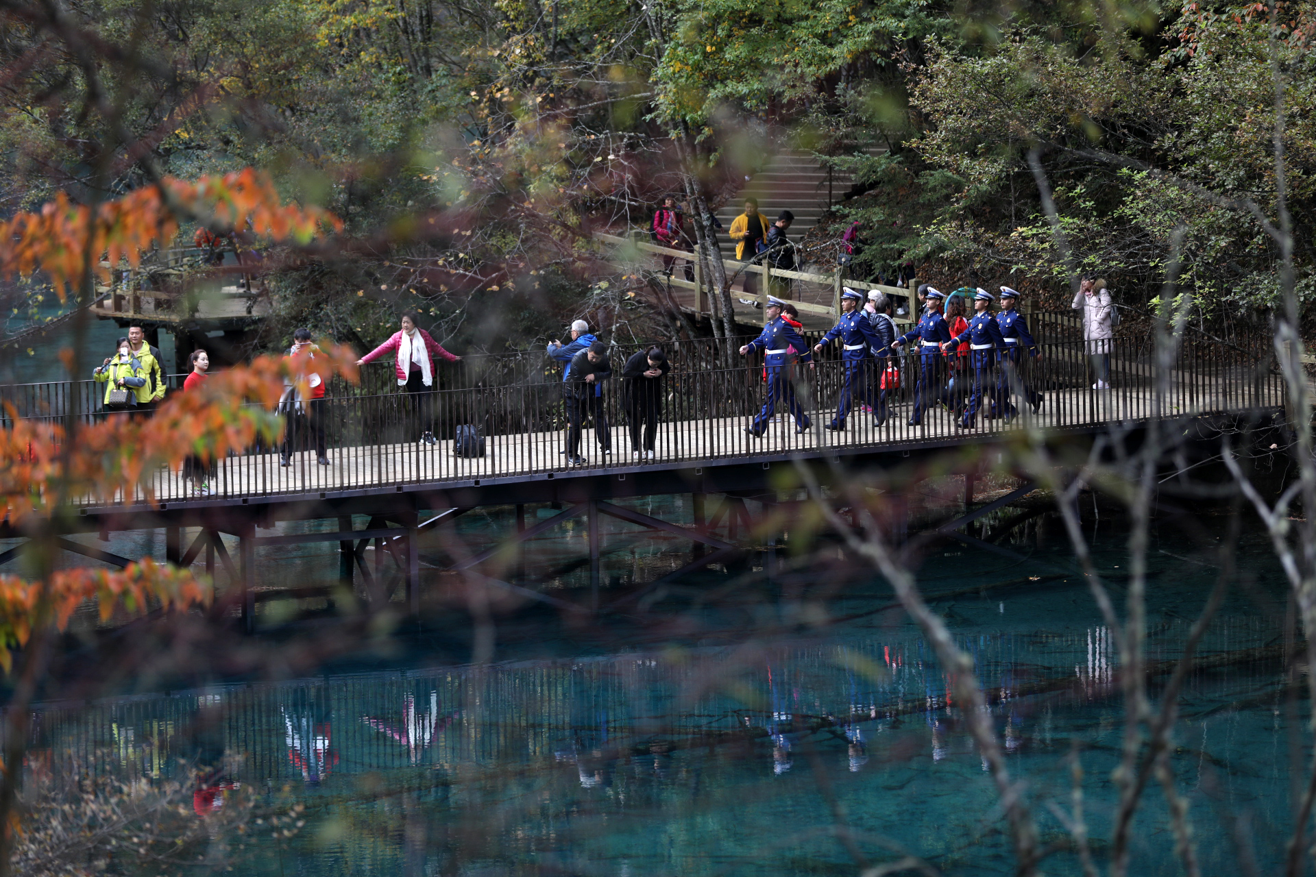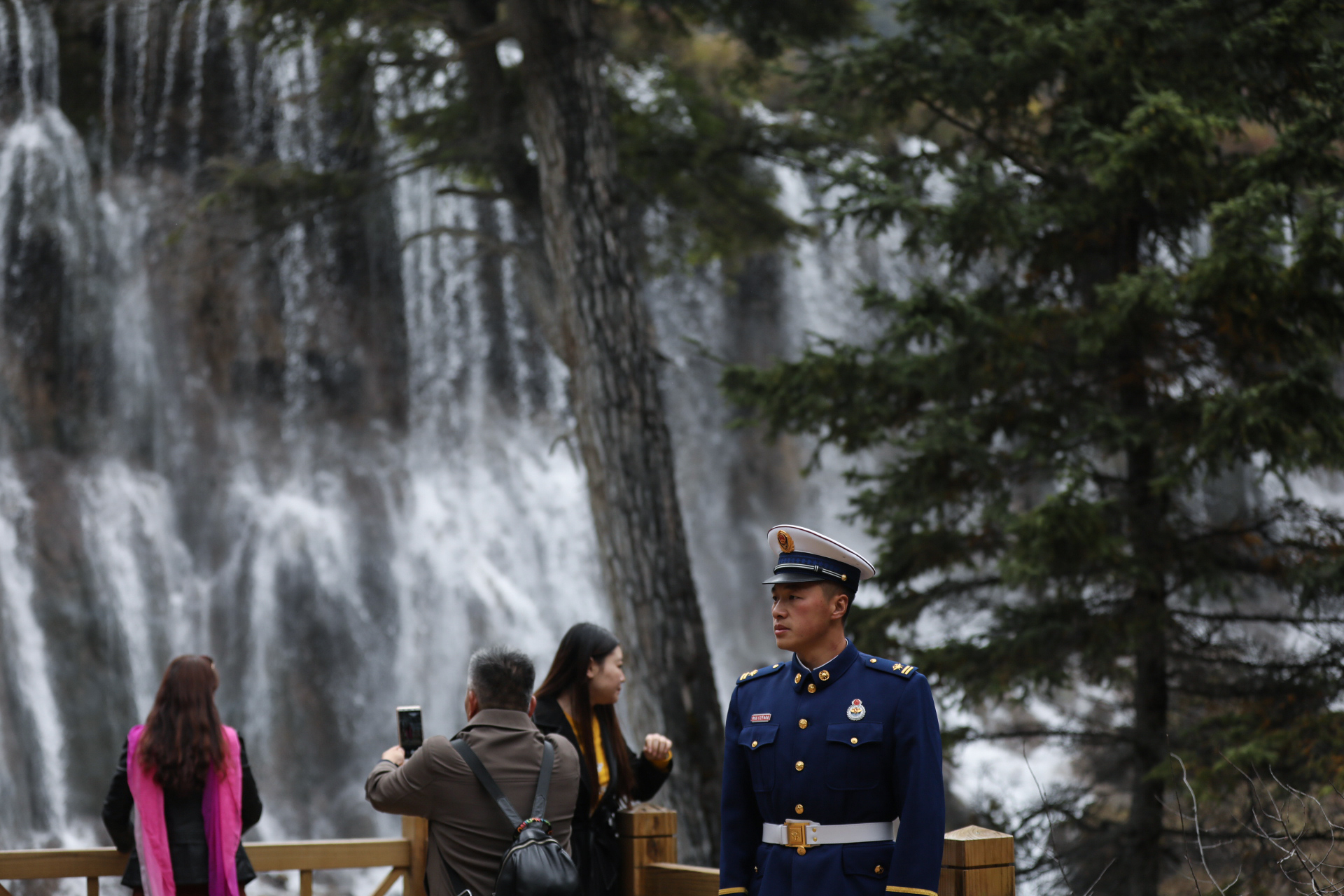 澤汪塔像往常一樣出現(xiàn)在景區(qū)的棧道上,他和隊(duì)友巡邏在游客最多的長海和五彩池附近,擔(dān)負(fù)著周邊的森林防火工作和游客安全。