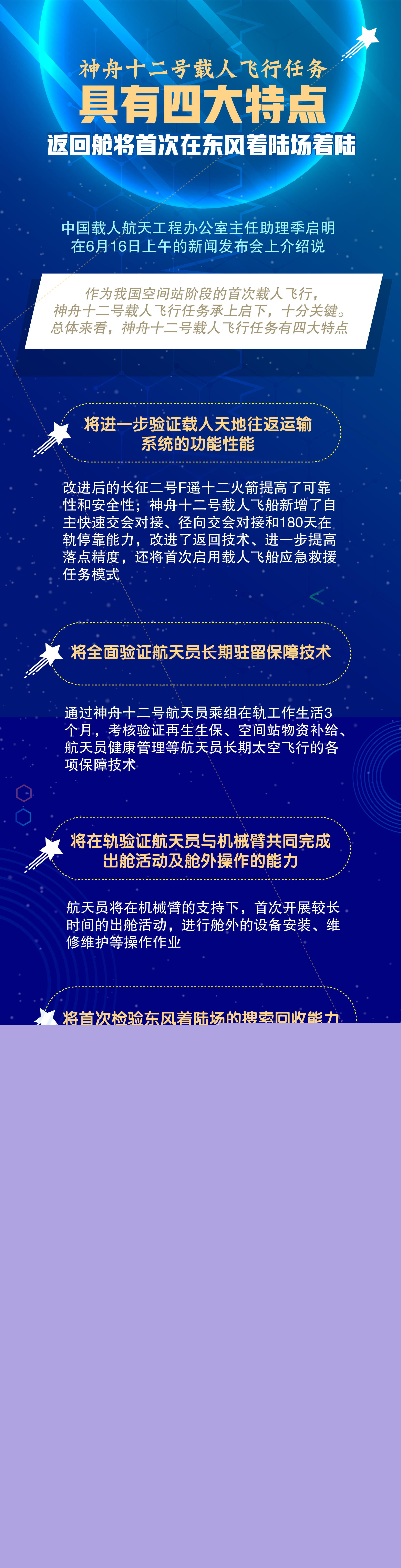 圖表:神舟十二號載人飛行任務(wù)具有四大特點 返回艙將首次在東風(fēng)著陸場著陸