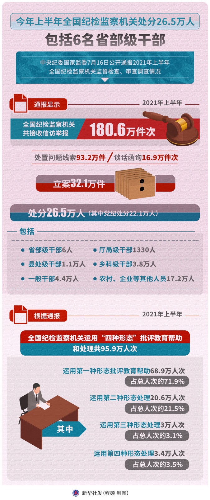 圖表:今年上半年全國紀檢監(jiān)察機關處分26.5萬人 包括6名省部級干部