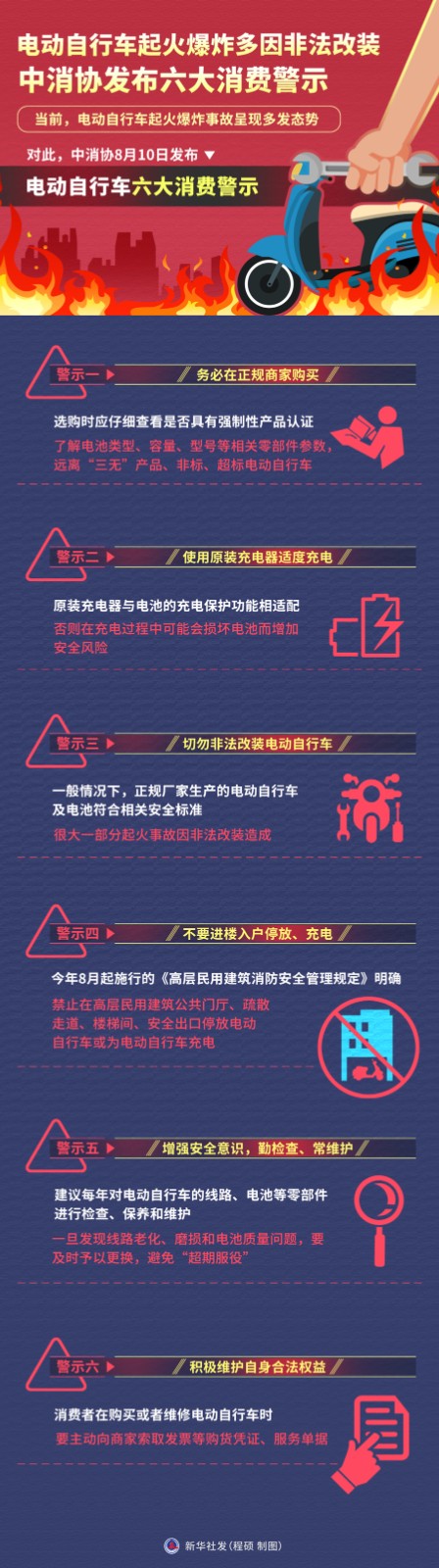 圖表:電動自行車起火爆炸多因非法改裝 中消協(xié)發(fā)布六大消費警示