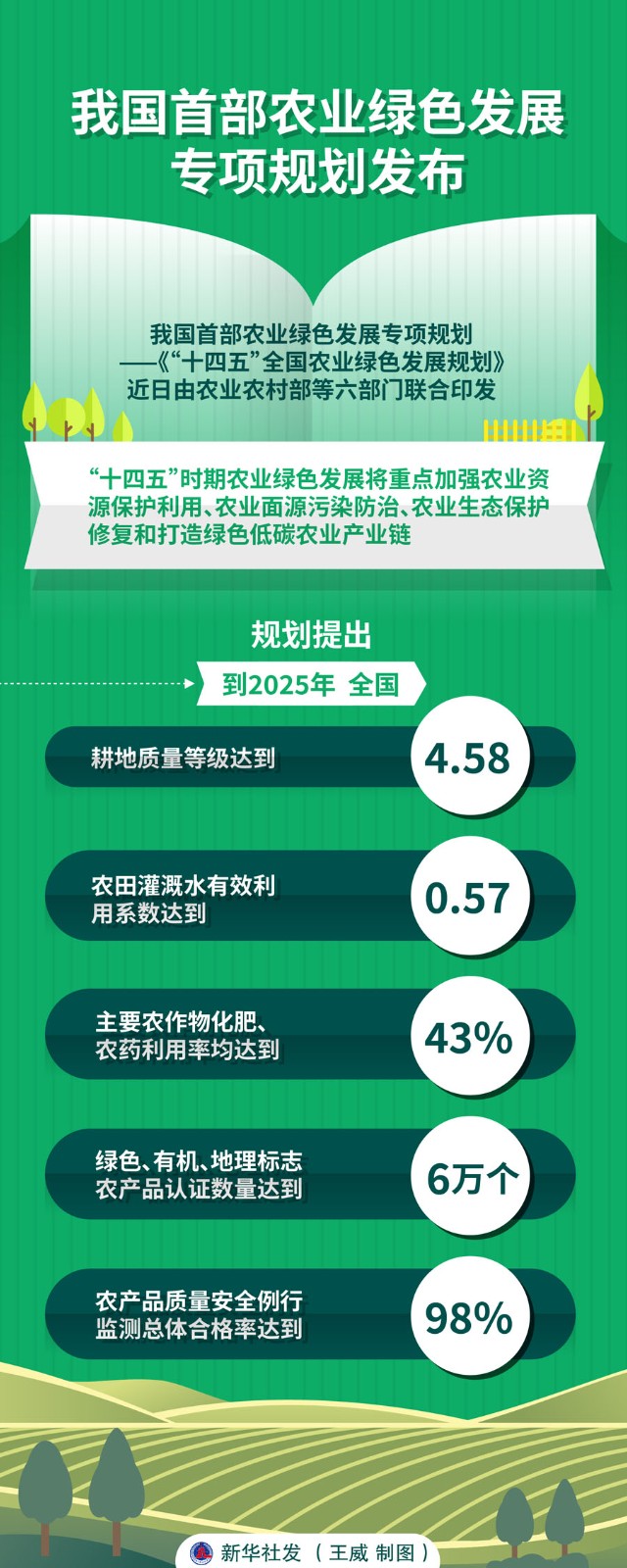 我國首部農(nóng)業(yè)綠色發(fā)展專項(xiàng)規(guī)劃——《“十四五”全國農(nóng)業(yè)綠色發(fā)展規(guī)劃》近日由農(nóng)業(yè)農(nóng)村部等六部門聯(lián)合印發(fā)。