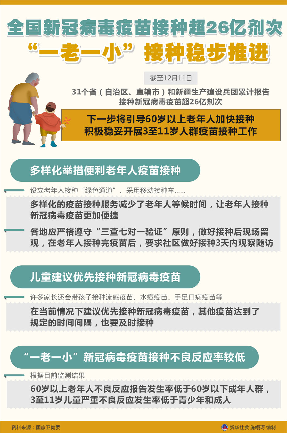 圖表:全國新冠病毒疫苗接種超26億劑次 “一老一小”接種穩(wěn)步推進