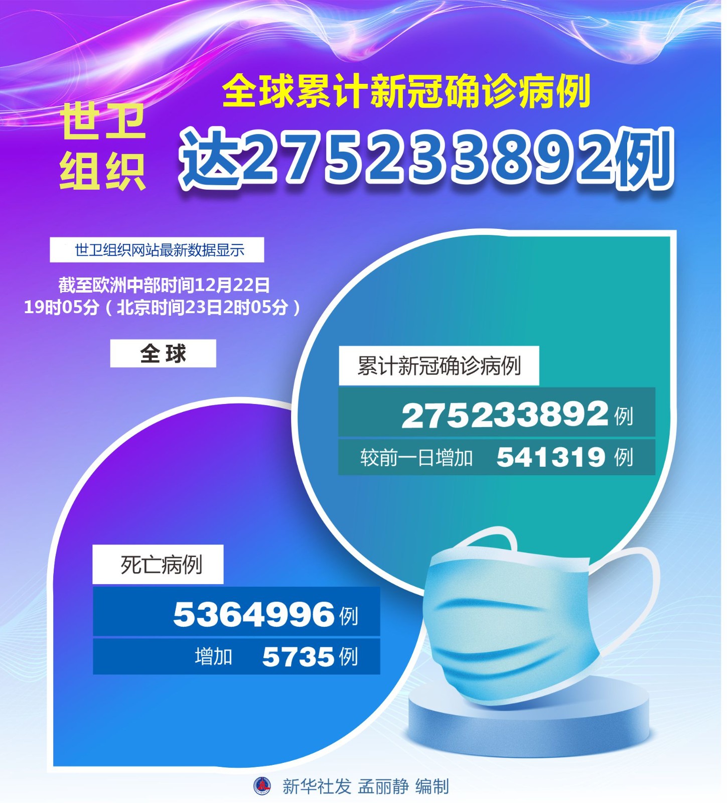 圖表:世衛(wèi)組織:全球累計新冠確診病例達275233892例
