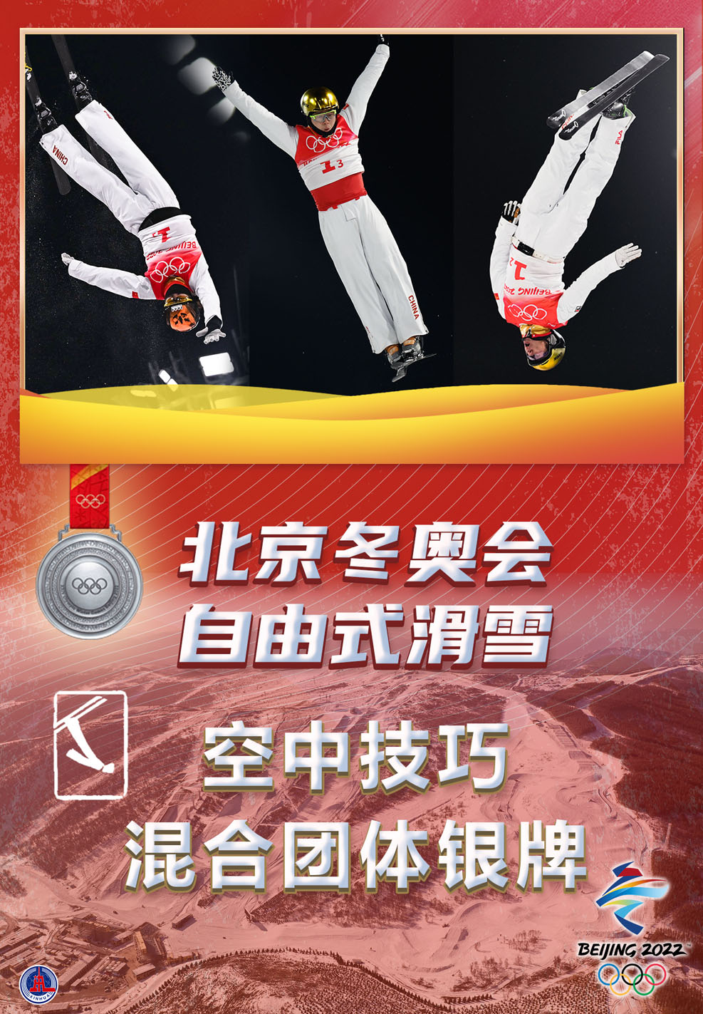 海報:中國隊獲自由式滑雪空中技巧混合團(tuán)體銀牌