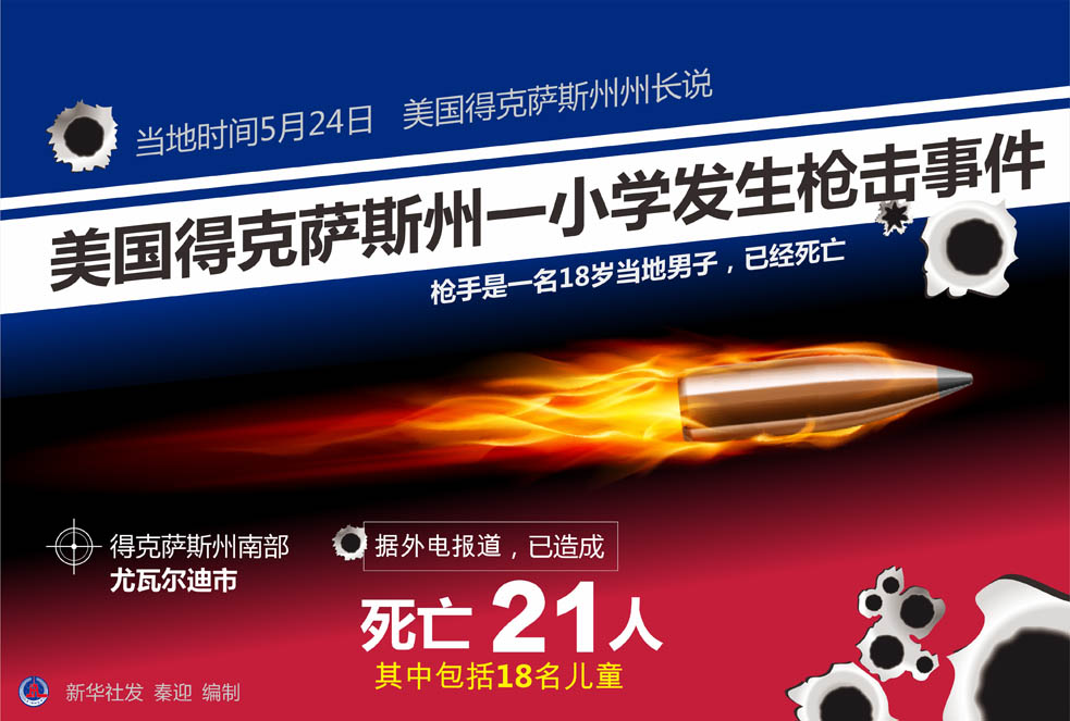 美國(guó)得克薩斯州州長(zhǎng)阿伯特5月24日說,得克薩斯州南部尤瓦爾迪市一所小學(xué)當(dāng)天發(fā)生槍擊事件。