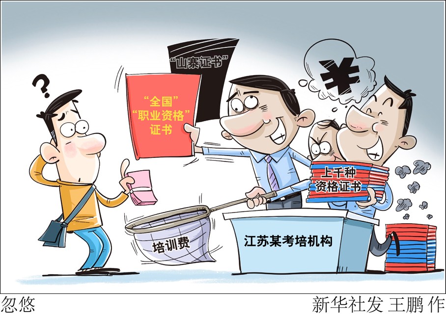 “新華視點(diǎn)”記者實(shí)地走訪發(fā)現(xiàn),該公司僅有2間辦公室,20多人辦公,卻開發(fā)了1730個職業(yè)資格考試項(xiàng)目,宣稱已發(fā)證128萬張。