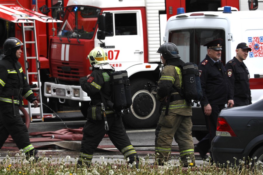 6月3日,在俄羅斯首都莫斯科,救援人員在火災(zāi)現(xiàn)場(chǎng)工作。