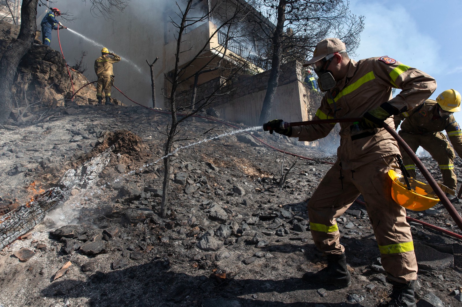 6月4日,消防員在希臘首都雅典南部郊區(qū)滅火。