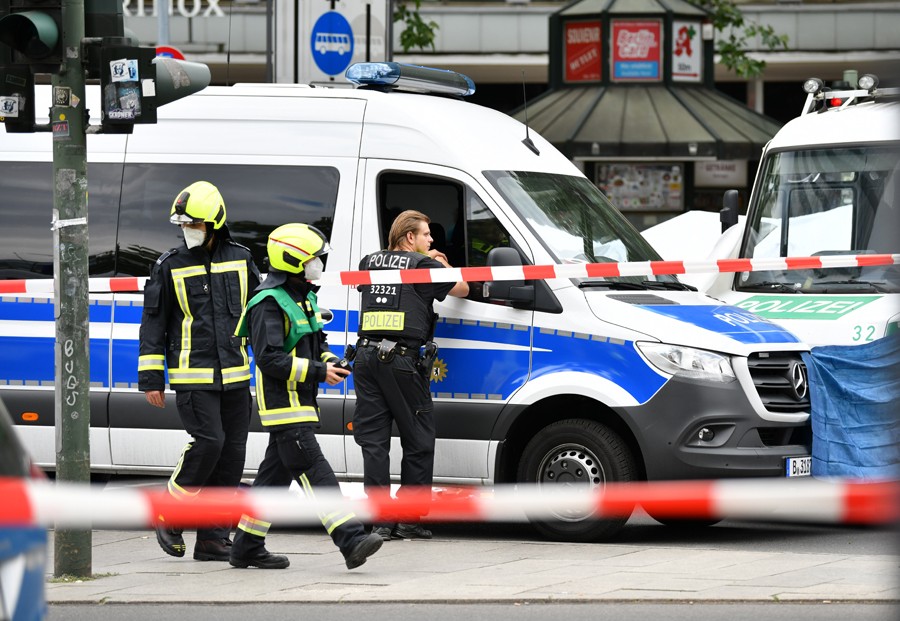 6月8日,警察在德國柏林車輛沖入人群事件現(xiàn)場工作。