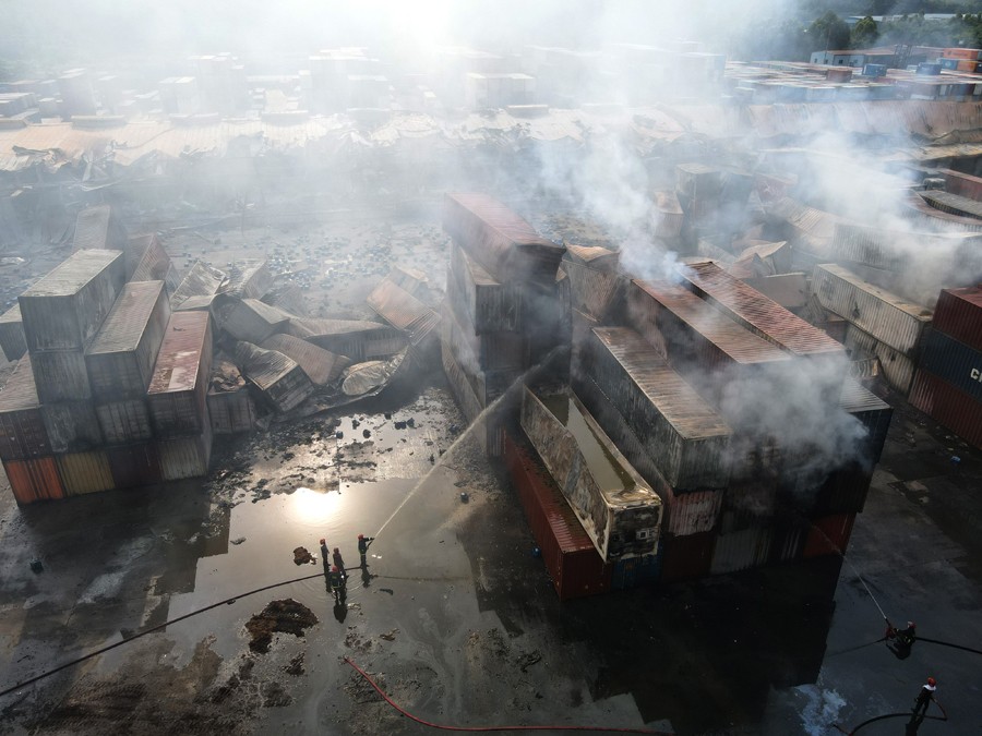 孟加拉國東南部吉大港附近的內(nèi)陸集裝箱堆場4日晚起火,7日火勢終于得到控制。