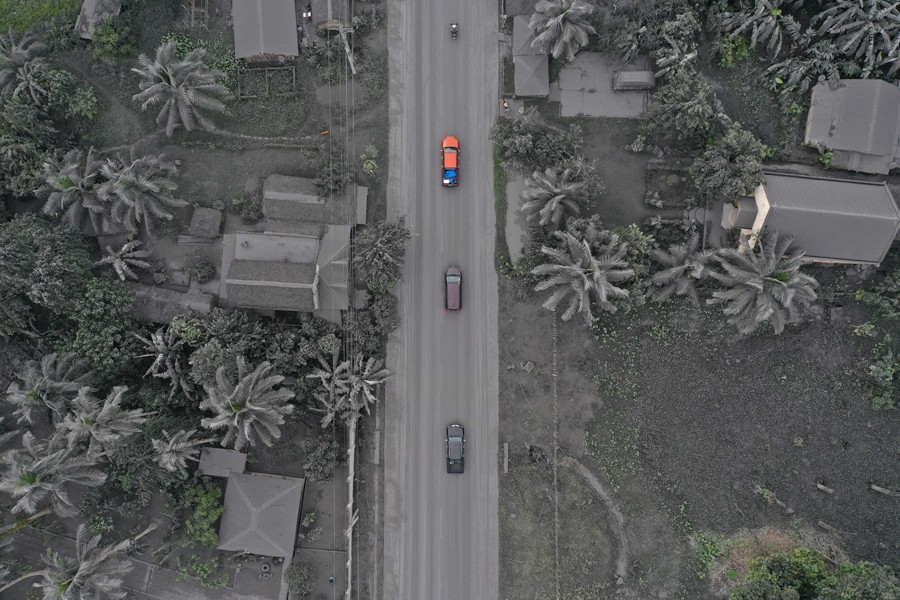 6月5日,菲律賓索索貢省的一個(gè)城鎮(zhèn)被布盧?;鹕絿姲l(fā)的火山灰覆蓋(無人機(jī)照片)。
