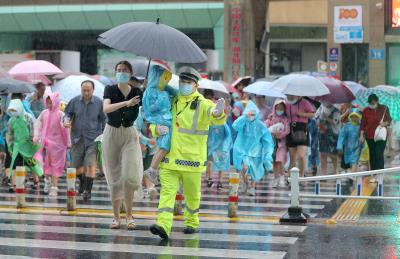 6月27日傍晚,湖北省荊門市公安局交警支隊民警在雨中,護送學(xué)生安全過馬路。當天,荊門市發(fā)布暴雨橙色預(yù)警,荊門市公安局交警支隊民輔警提前到達各個護學(xué)崗點,在雨中積極疏導(dǎo)交通,護送學(xué)生安全過馬路,確保學(xué)校門前及周邊道路交通安全暢通。