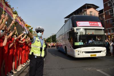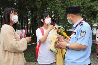 6月7日,2022年度全國高考正式拉開帷幕。為確保高考安全順利進行,遼寧省燈塔市公安局成立高考安保服務(wù)工作領(lǐng)導(dǎo)小組,為廣大考生提供優(yōu)質(zhì)高效的警務(wù)服務(wù),全力保障高考的順利進行。圖為考生對民警的傾力守護表達感謝。
