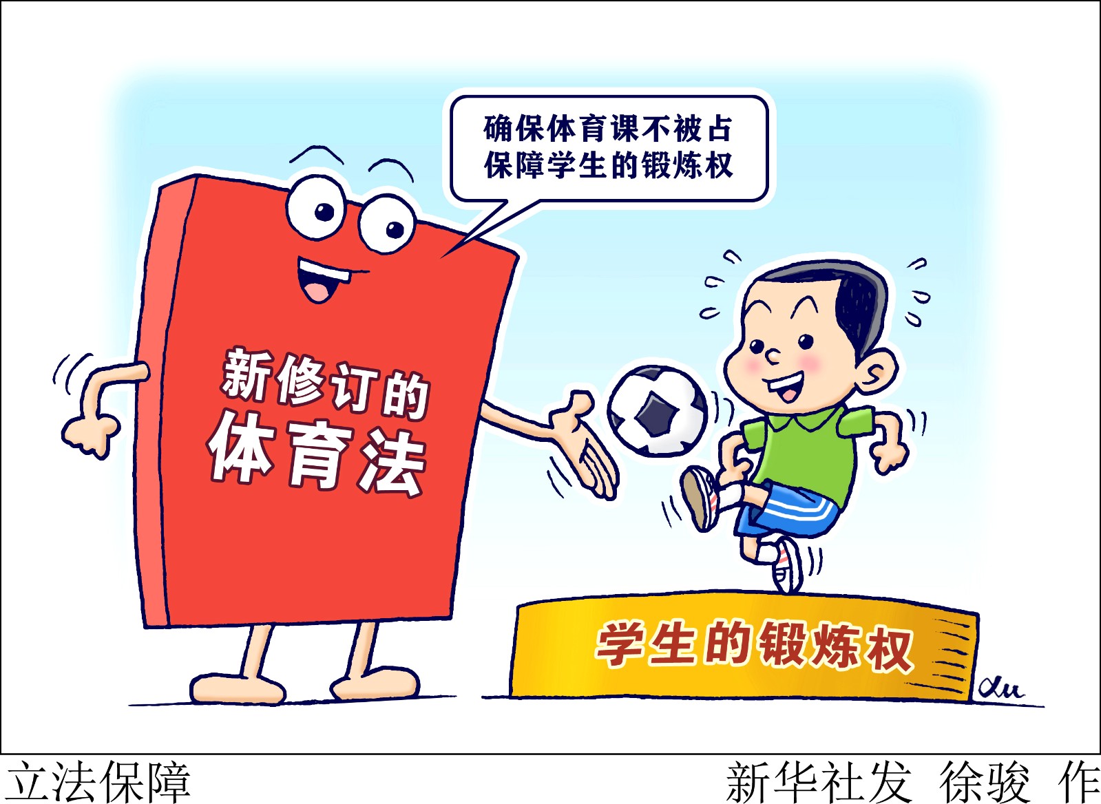 新修訂的體育法近日頒布,其中,確保體育課不被占、在校每天鍛煉不少于一小時等條款,充分體現(xiàn)了加強青少年身體素質(zhì)、促進(jìn)青少年全面發(fā)展的國家意志。