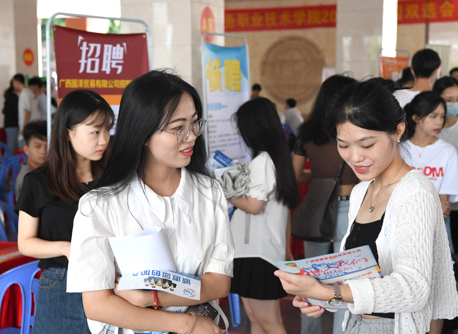 7月2日,廣西國際商務(wù)職業(yè)技術(shù)學(xué)院學(xué)生在校園雙選會上求職。
