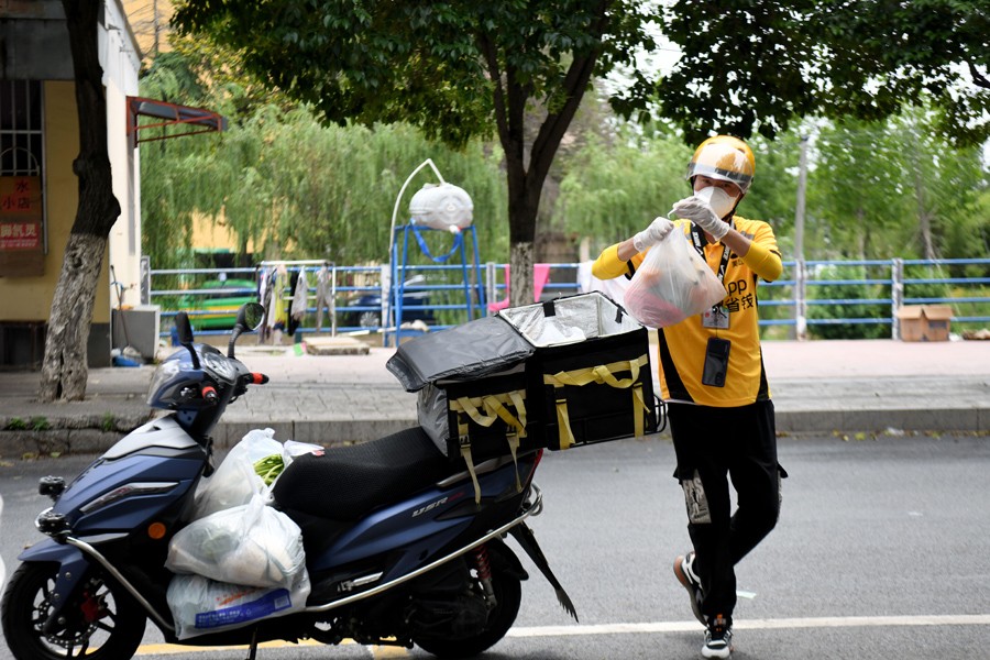 7月5日,譚章夢為顧客配送訂單。